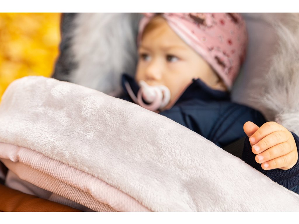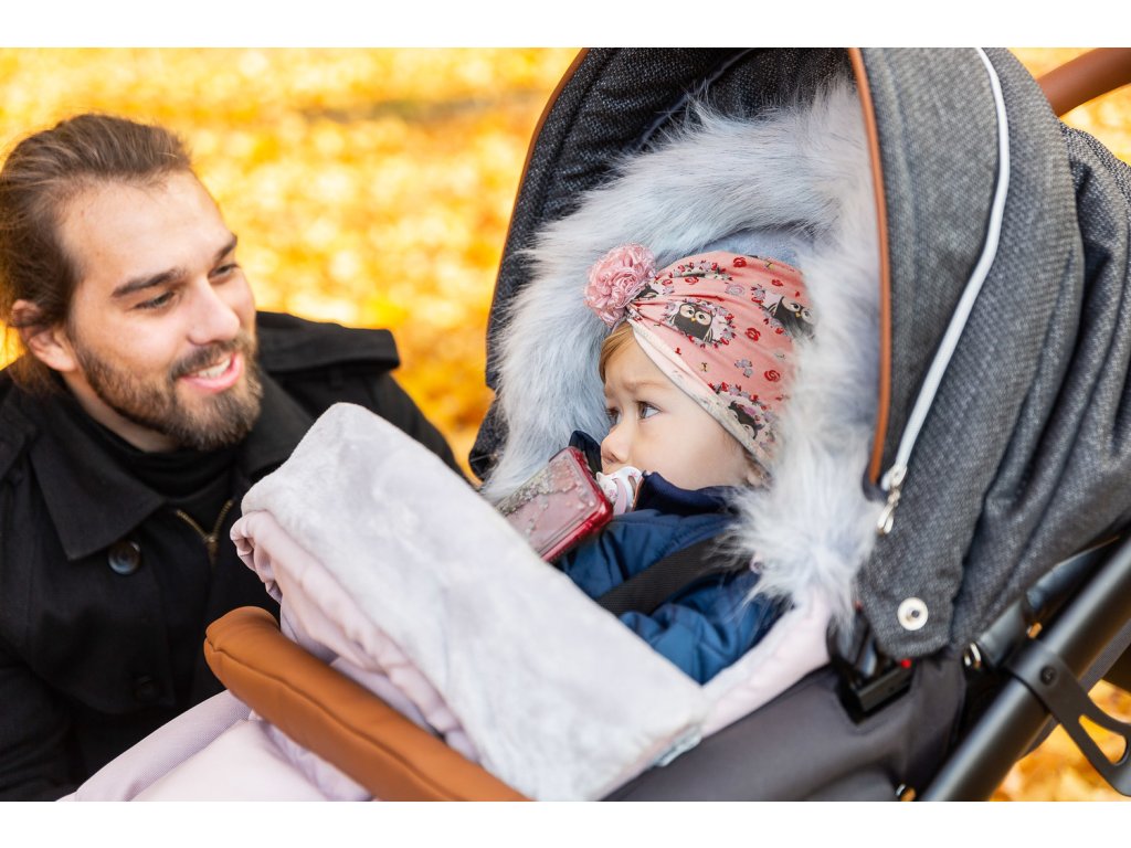Krásný teplý fusak s hřejivým flisom a kožešinou na kapuci využijete během chladných a mrazivých dní v kočáru, ale i v saních. Z vnější strany je vodotěsný materiál a zevnitř hřejivý flís, který je jemný a příjemný na dotek, díky čemuž se dítě bude cítit pohodlně a v teple.