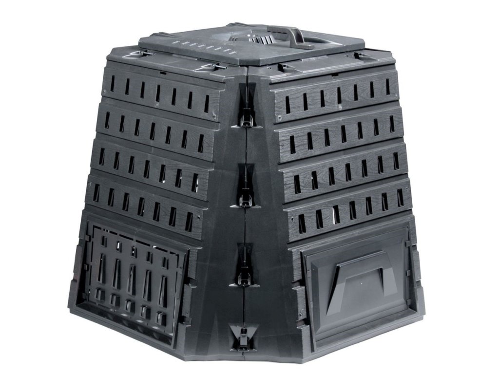 - Kompostér je vybaven víkem, bočními dvířky pro vyjímání kompostu a otvory sloužícími k provzdušňování