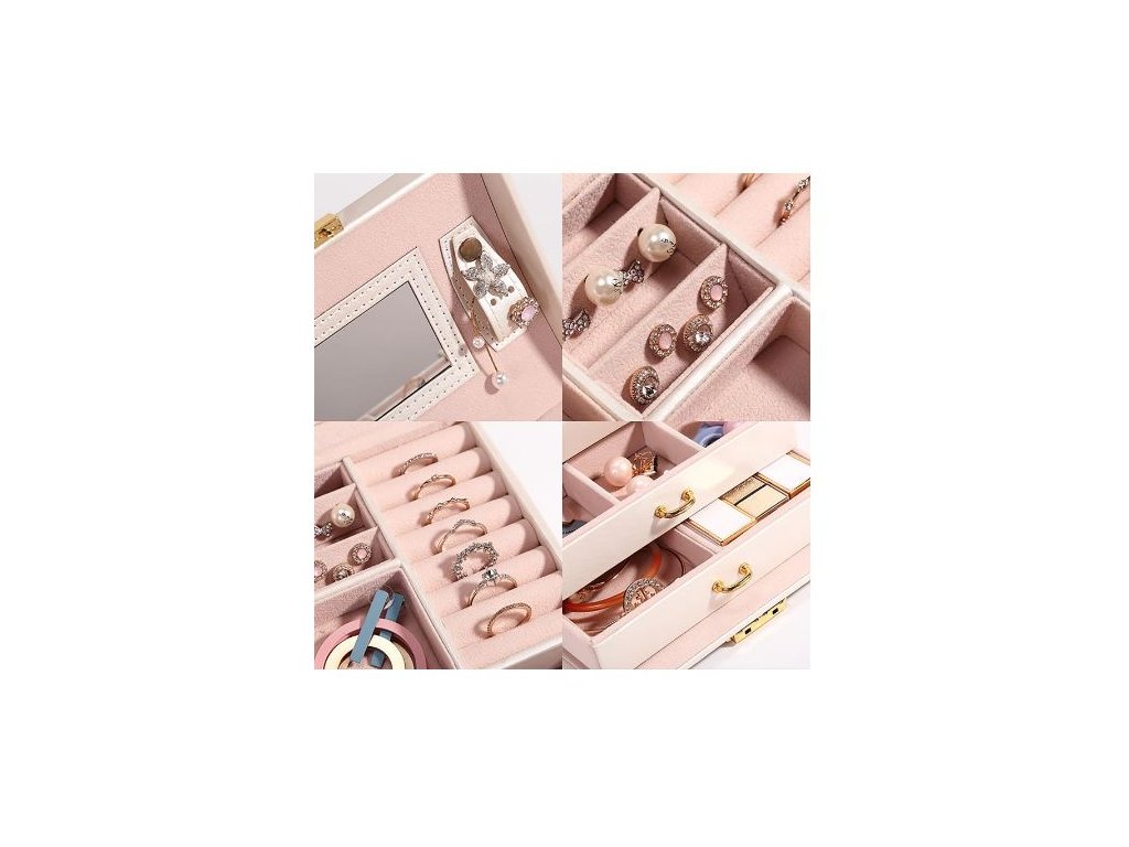 - Šperkovnice má různé přihrádky a prohlubně, díky kterým budete mít pořádek ve své sbírce