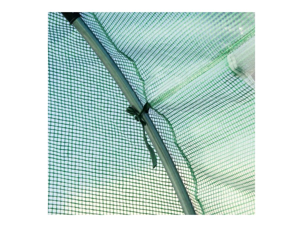 - Kvalitní fólie na fóliovník (agrofólie) z PE materiálu 140g/m2 (polyethylen - materiál s vysokou odolností vůči oděru a opotřebení) s výztuží ze síťoviny PP (polypropylen) vybavená UV filtrem