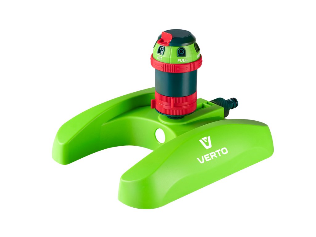 6-funkční sektorový zavlažovač s pohonem VERTO (ref. 15G788), který umožňuje účinné zavlažování i při nižším tlaku vody. Stabilní základna a nastavitelný rozsah a úhel trysky zajišťují rovnoměrné zavlažování. Díky pohonu je maximální zavlažovaná plocha až 350 m2. 6 různých režimů zavlažování umožňuje zvolit nejvhodnější typ proudu pro tvar zavlažované plochy.