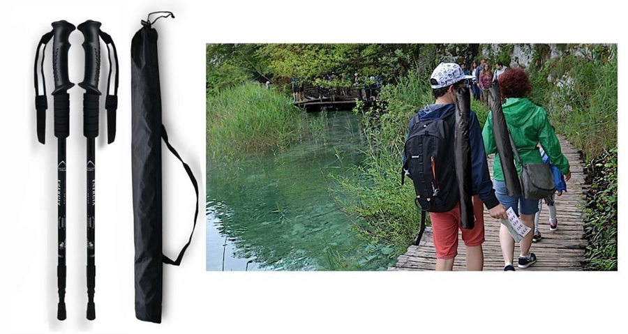 Trekingové nastavitelné hole s krytem a odrazkami jsou stvořené pro oblíbený Nordic Walking, při kterém spálíme o 20% více kalorií než při tradiční chůzi a co je nejdůležitější, zapojujeme více než 90% svalů celého těla. Při výběru délky používáme pravidlo: 0,68 x výška. Úhel předloktí k ramenu by měl být 90 stupňů, když jsou tyče drženy ve výšce rukojetí a konce tyčí jsou v pravém úhlu k zemi. Díky nim je chůze pohodlná a dynamická.