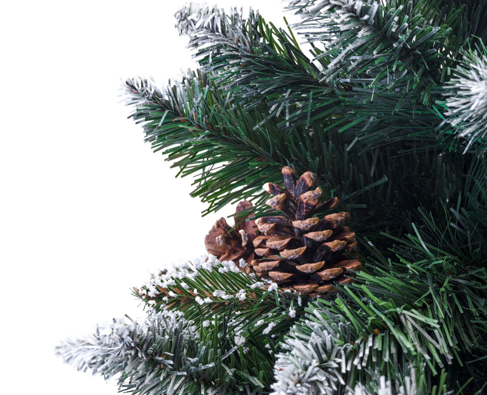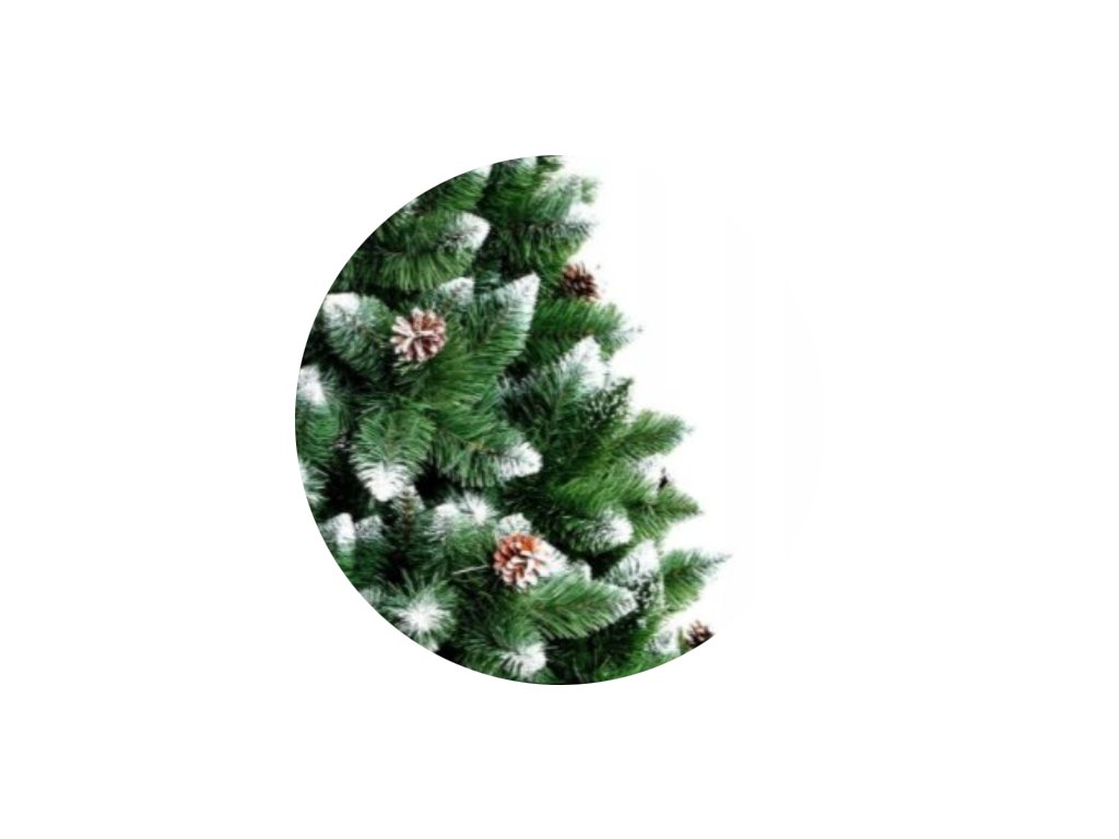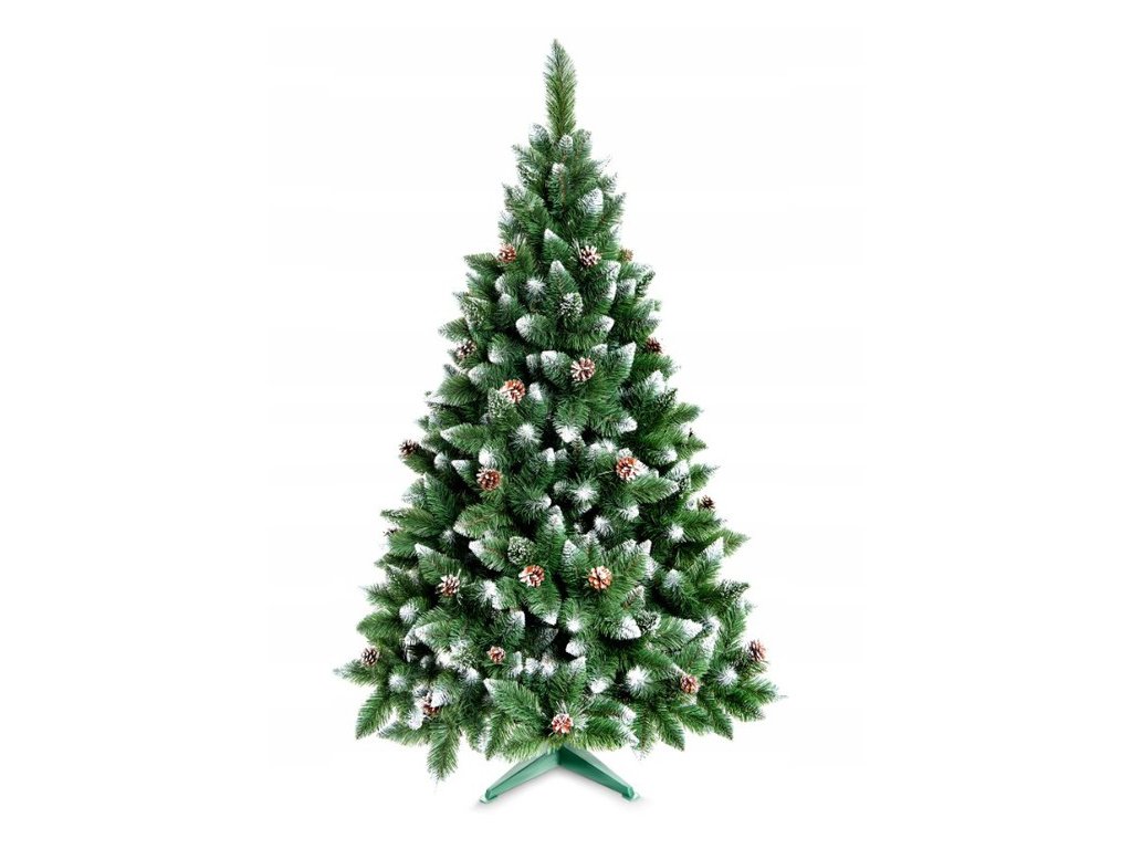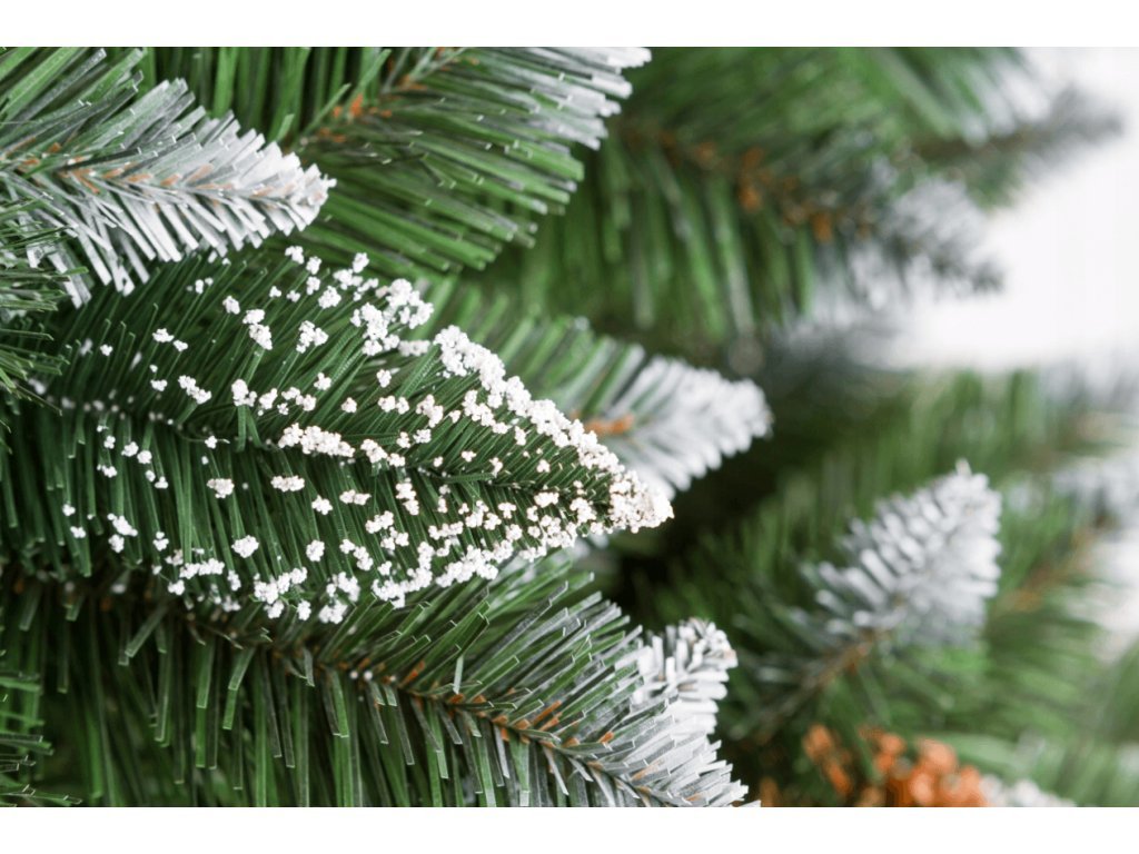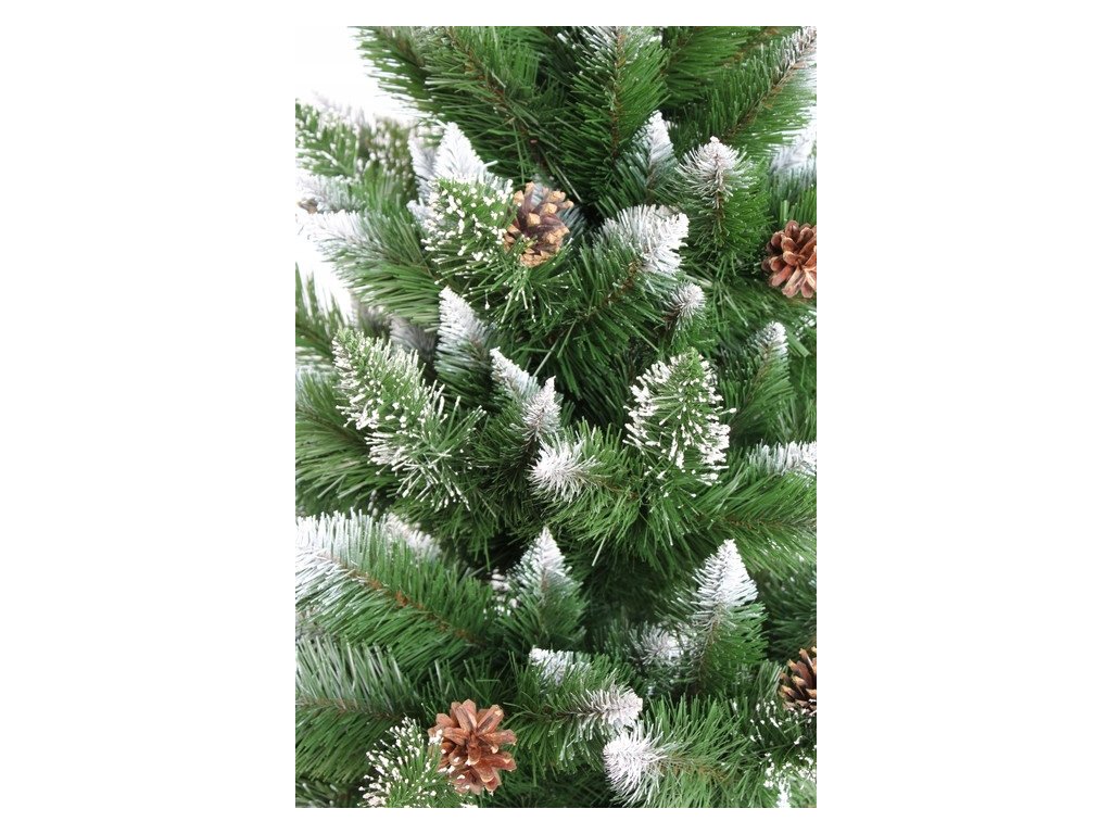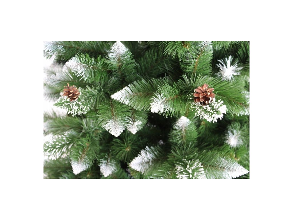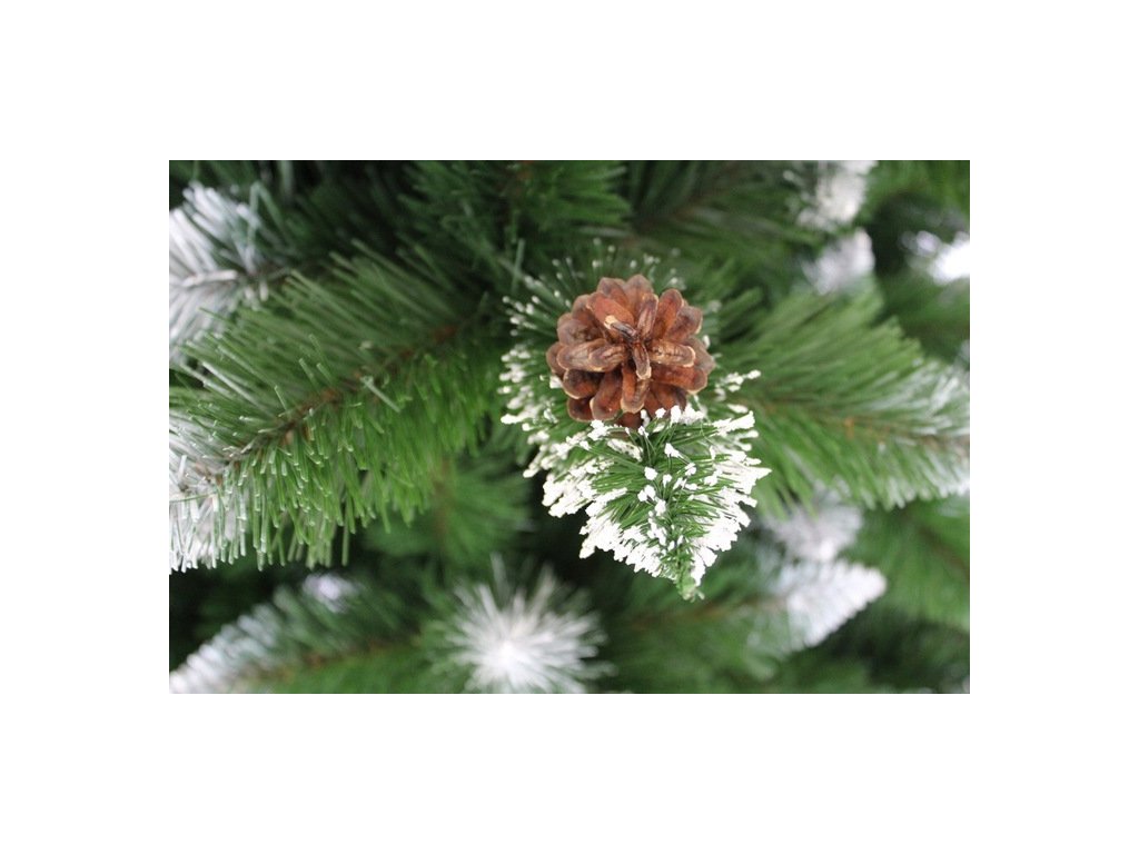 Umělý zasněžený vánoční stromeček - Borovice Luxury Diamond se šiškami 220cm s propracovaným designem jehličí, navodí atmosféru živého vánočního stromku. Konce větviček jsou pokryty bílou barvou a krystalky, připomínající námrazu a sníh.