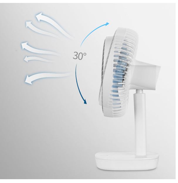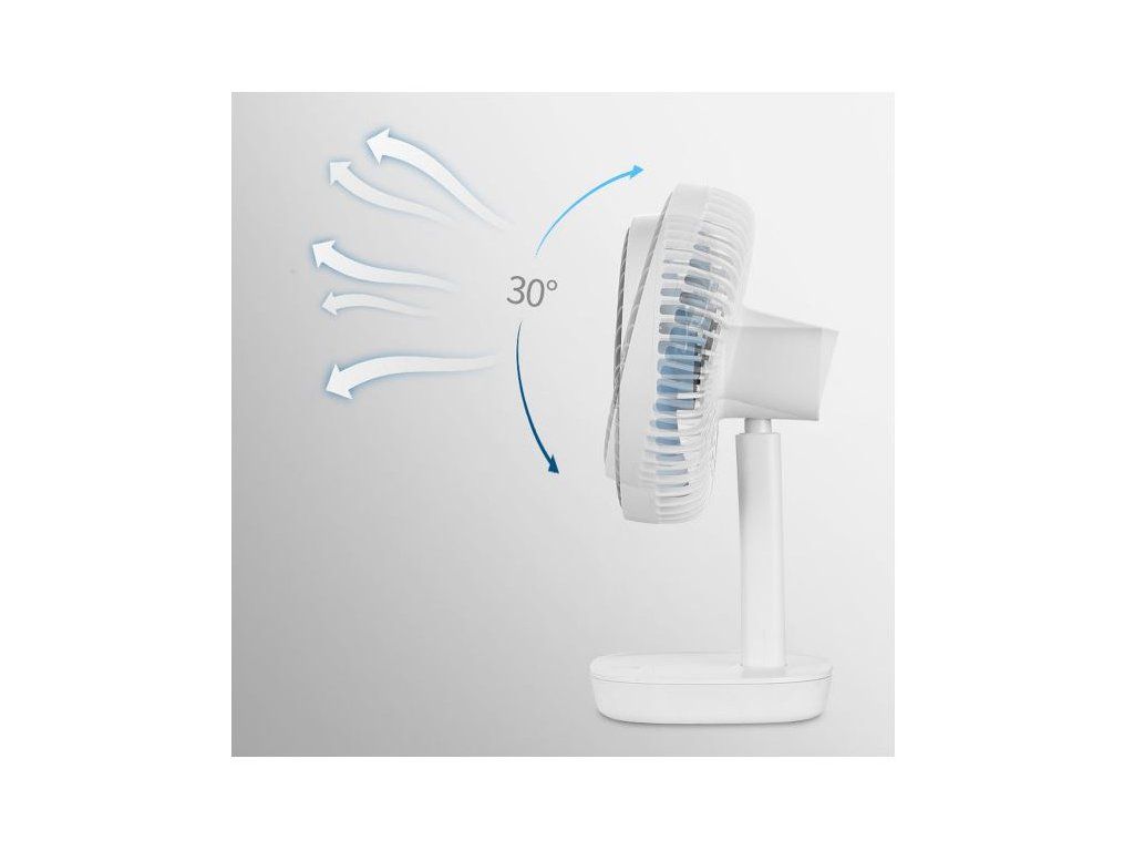 • Proudění vzduchu ventilátoru si jednoduše nastavíte podle svých preferencí, a to díky tomu, že má nastavitelný úhel sklonu až do 30°.
