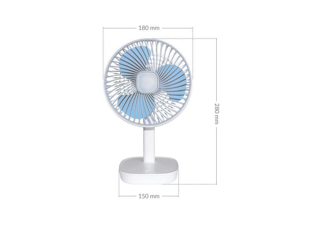 • Přenosný ventilátor se vyznačuje malými rozměry, což znamená, že si jej můžete vzít s sebou doslova všude – do práce, školy nebo na výlet.