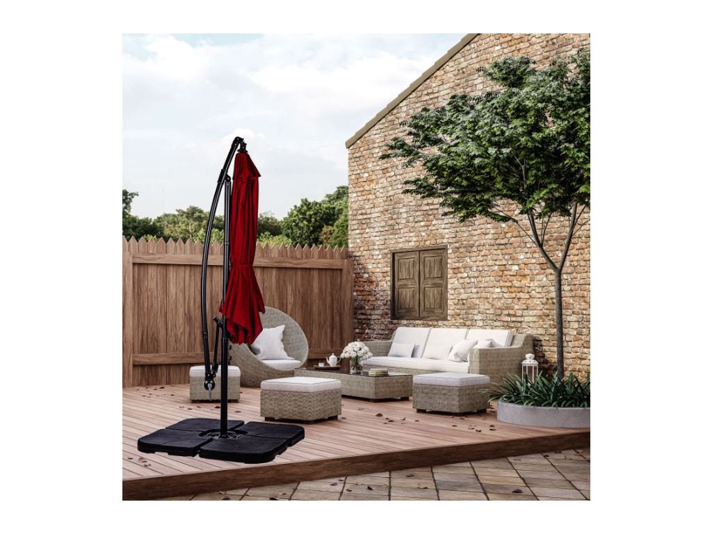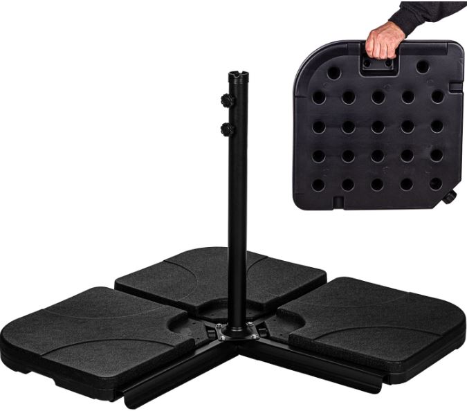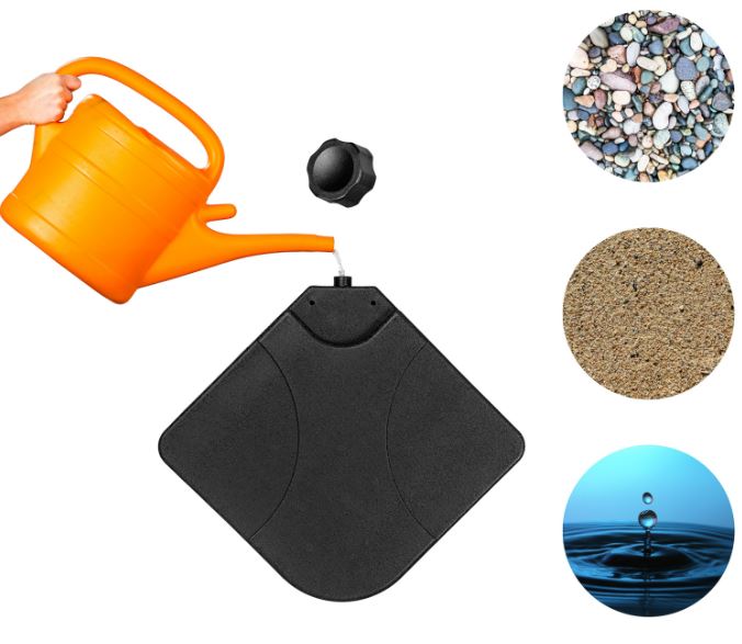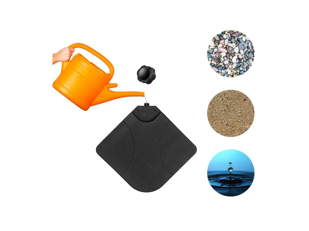 Spolehlivý a praktický podstavec pro zahradní slunečníky slouží jako stojan plnený vodou, pískem nebo jemným kamenivem na zatížení vašeho slunečníku. Připomíná velký polštář, který se naplní vodou. Díky velkému objemu vody zatíží slunečník. V horní části podstavce se nachází otvor, přes který se nalije voda. Objem podstavce je 60 litrů vody, nebo 80 kg písku.